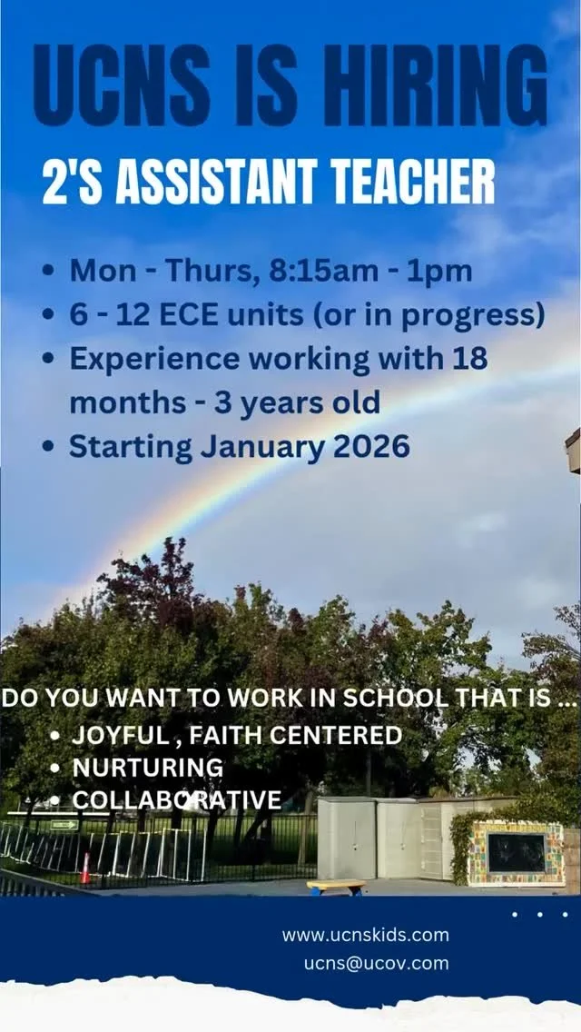 At UCNS, we believe that children learn best when they are invited to connect, explore, create, and imagine. Our preschoolers develop a love of learning, confidence in their ability to positively contribute to their classroom community, and enthusiasm to share their unique gifts, not only in preschool but throughout their lives.
